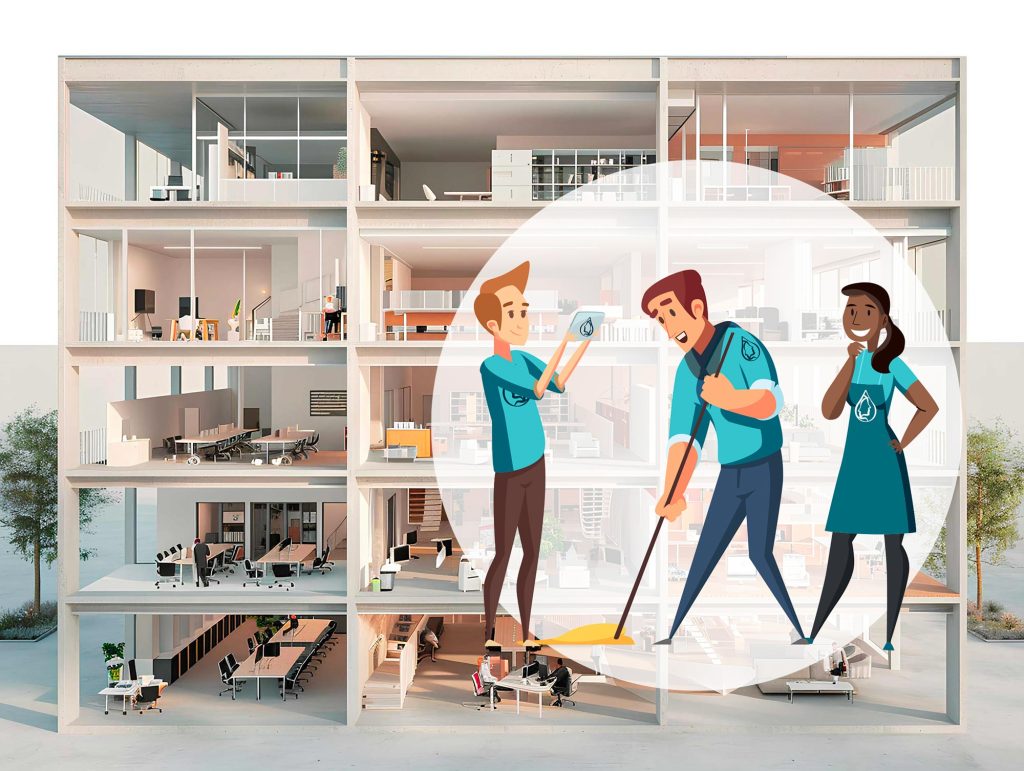 Entretien quotidien des bureaux et open spaces professionnels.